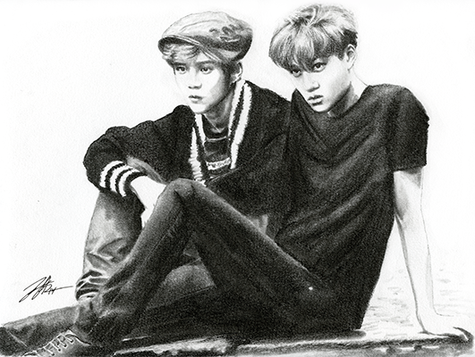 Ephemeral #EXO #EXOM #XiuMin #kimMinseok #diejungs #ohboymagazine #traditionalart #charcoal #exofanart
