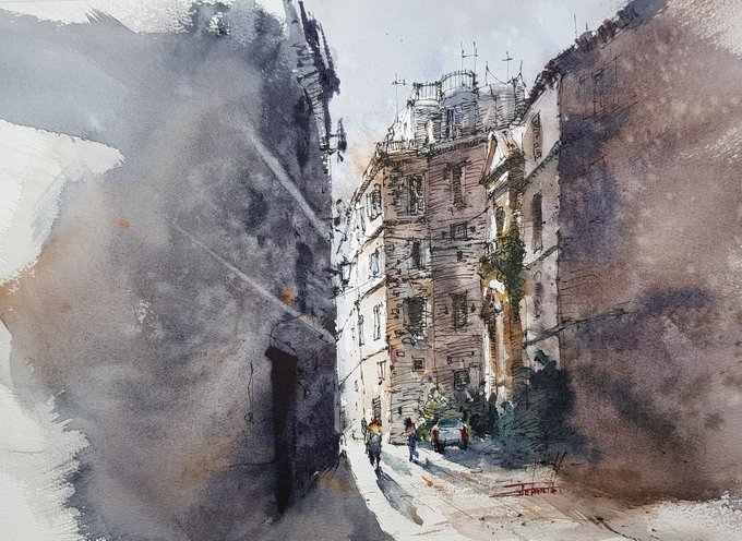 #drawing #dailydrawing #dailysketch #pendrawing #fountainpendrawing #preppy #watercolor #aquarelle #penandwash #alley #travel #travelbypainting