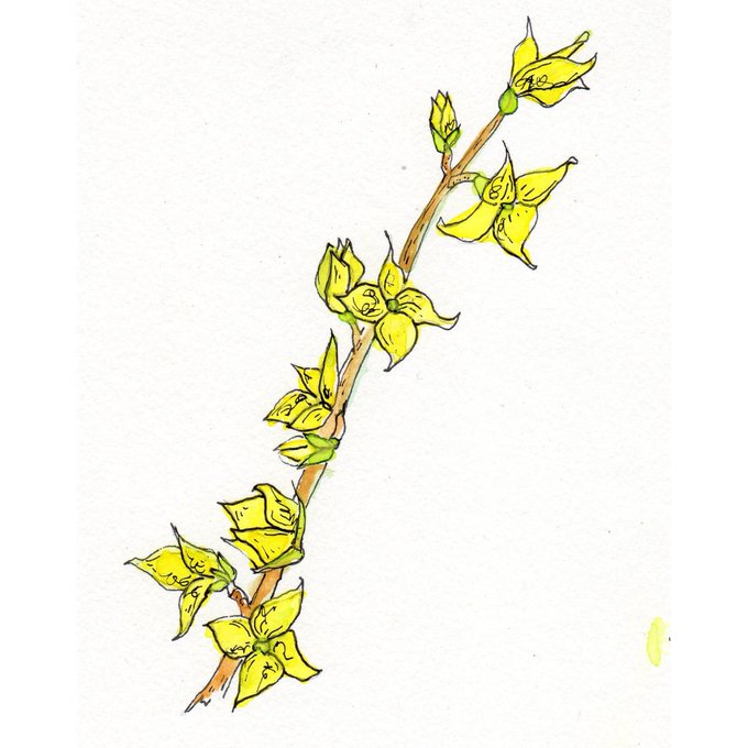 28/100 #forsythia ... a quick jump away from the #fruitandveg theme to draw a flower that is only in season right NOW #spring #gm100dayproject #The100dayproject #100daysof005 #illustration #watercolor #micron @sakuraofamerica #cpt100day #100illustrationsbyjuliab