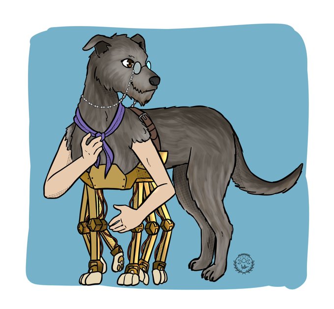 I'm so excited by this art from @HeliaSanto. It's my gooddest boy OC, Alphonse wolfhound.