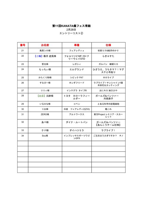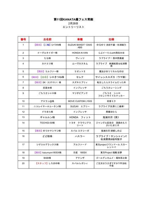 現時点での痛車エントリーリストです。