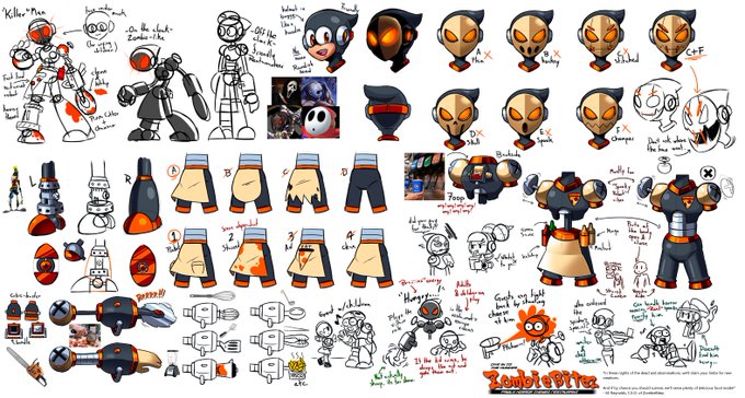 ...So a new design of my own making: KillerMan, a robot master made to work at a horror-themed restaurant, very much a parody of the mascot horror genre.