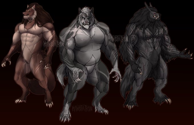 some of my werewolf OCs! from left to right: dannon, maryth, and samael.