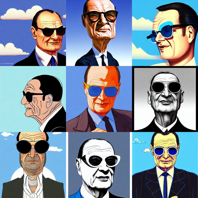 Quelques personnalités politiques françaises faites avec Disco Diffusion : Jacques Chirac, Christine Lagarde, Jean-Luc Mélenchon, et Rama Yade.