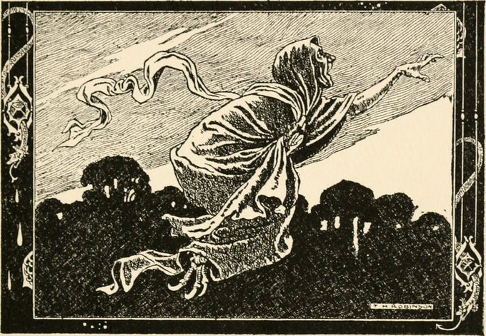 Churn-Milk Peg is a traditional British hag who sat in nut trees smoking her pipe and waiting for kids to come and pick unripe nuts. When a child reached for a nut she would pinch them and chide 'Smoke! smoke a wooden pipe! Getting nuts before they’re ripe!' #folklorethursday