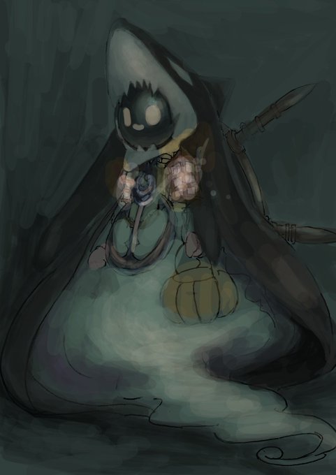 @enubanme パンプキンイーター(@noria0810)ハロウィンの夜にあらわれるジャックオランタンを捕らえて料理して食す。年端のいかない少年が好物というわけではない(はず)料理上手。