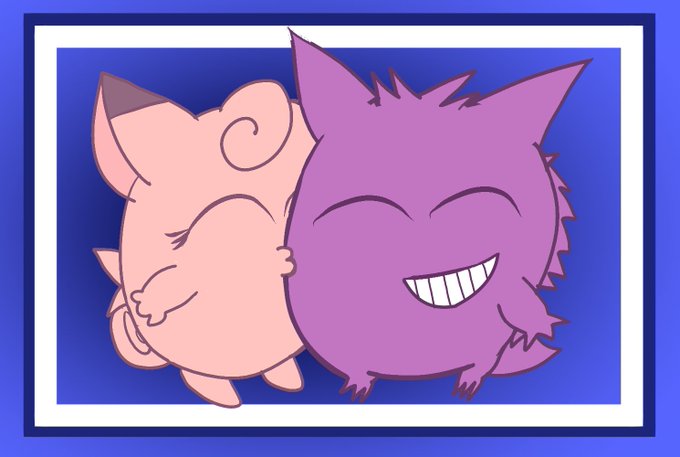 Happy Valentines Day @IrishGraveRober Both couples represent us so I made both! Made a starry night pic of Vit and Aurelia. Also made Clefable giving Gengar a smoochie kiss.🦇💖🖤