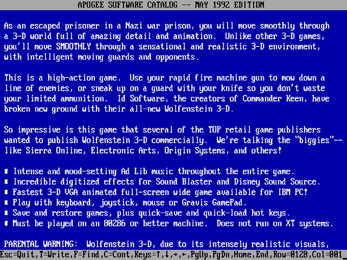 30. THIRTY? Wolfenstein 3D is 30 years old today, the original shareware having been released on 5 May 1992. Where were you when this was released?