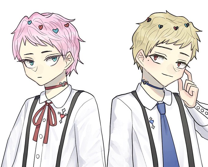 #XIIアミキティア アマーリくん(桃髪)&ドリューくん(金髪)。 双子の兄弟。「ヘブンズ=ランド」の人間が多くいる所に住む。