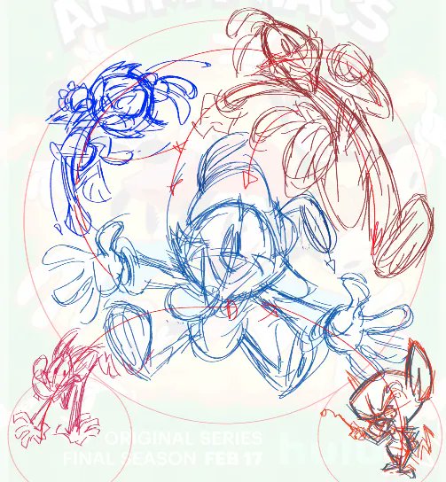 Here's the process we go through to create the Animanaics key art: Hulu roughs, I draw thumbnails, Tony Craig posed it... (1/2) #animaniacs #animation #animaniacsreboot #zanytwt