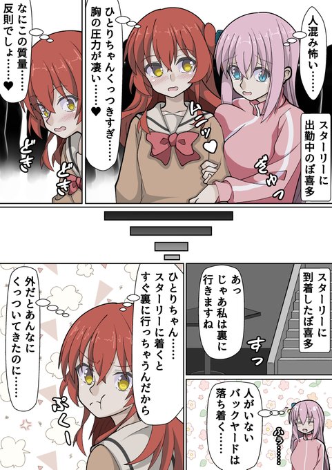 意識して欲しい喜多ちゃんと、華奢すぎる喜多ちゃんを気遣うぼっちちゃん。微妙に噛み合わない二人を描きました。