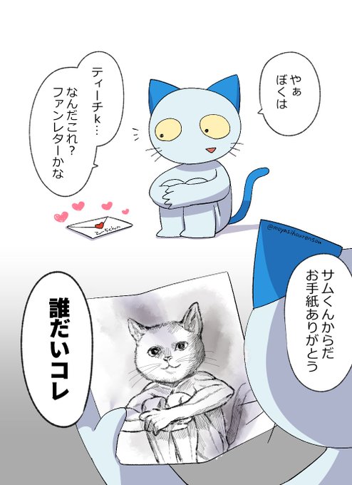サムくんの耳は靴下と聞いて 私の描くサムくんめっちゃ耳長いのよ #ねこのティーチくん