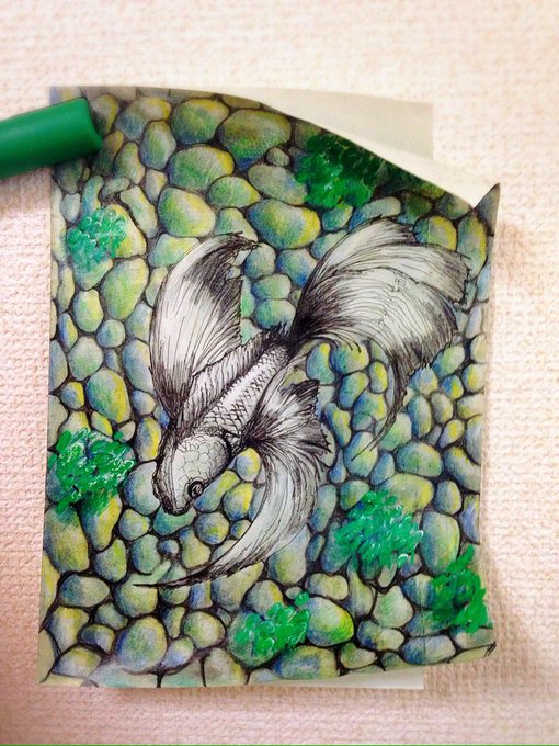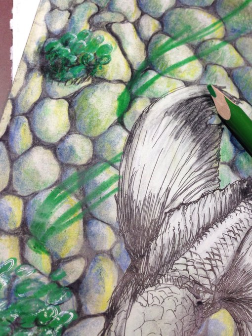 ホワイトやら金インクが乾かないんで、明日フレームにぶち込みます♂( ^ω^ )おやちゅみ🐆