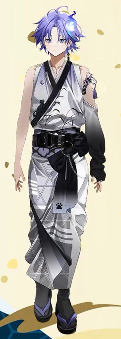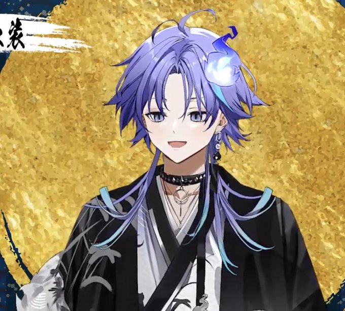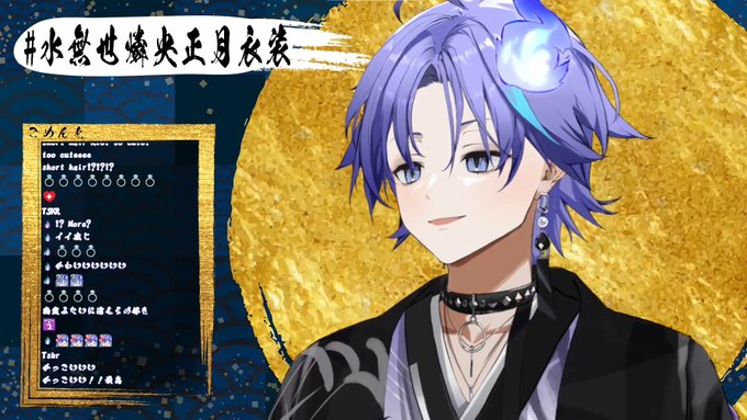Oho if you noticed, he has phases of the moon on his outfit! Also, short hair with the beautiful long locks!!! #水無世燐央正月衣装 https://t.co/zJylR5HwOA