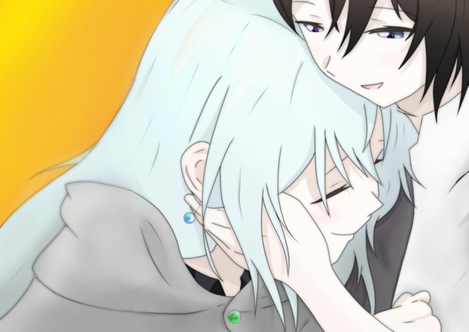 ⚙モノリットさんとヴィト、色の対比が素敵だねぇ~って話をしてたやつ、描いてみた!😆そもそも髪も目も対比な感じあるけど、合わせて服も白黒したー!