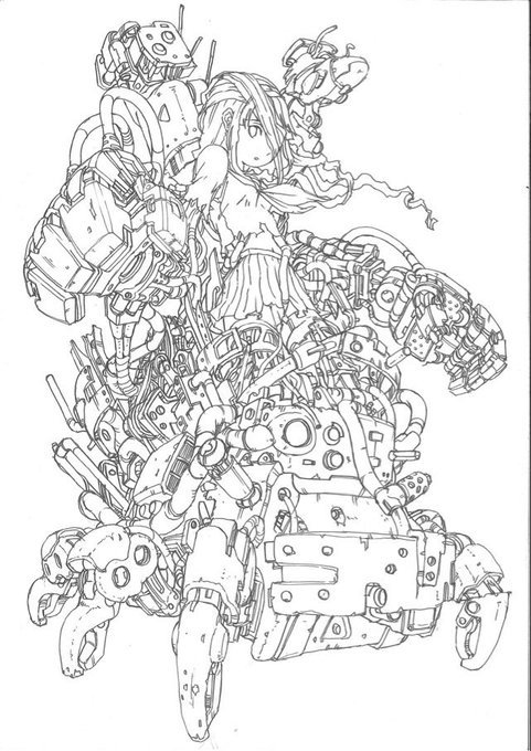 #皆さん線画と塗った後を見せてください 線画は何が描いてあるか分からん。 だから色塗りする時のモチベ維持が大変です。 最近はよく挫折します💦