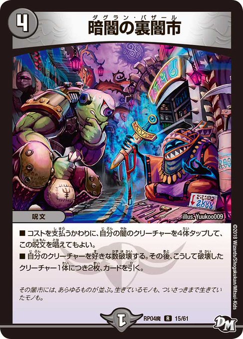 軽量クリーチャーを並べてノーコスト闇市で破壊しつつ大量ドローして再度展開、ヘモグロを破壊できると美味しい