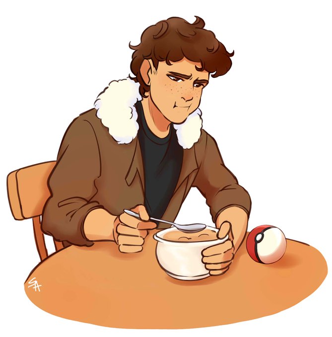 Christmas art trade with my friend @CraigTheCroc ! It’s his Pokémon trainer oc having a holiday snack with good ole ampharos ^-^