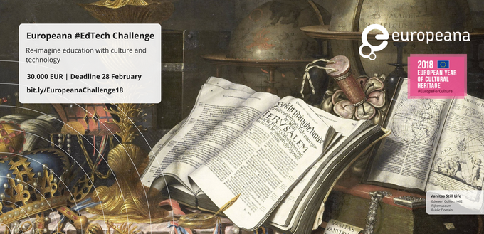 Submit your #EuropeanaEdTechChallenge proposal before 28 Feb 2018! We’re offering €30,000 for the best idea(s) reusing #culturalheritage https://t.co/xiAYTSXcWb #edTech #EuropeanaChallenge