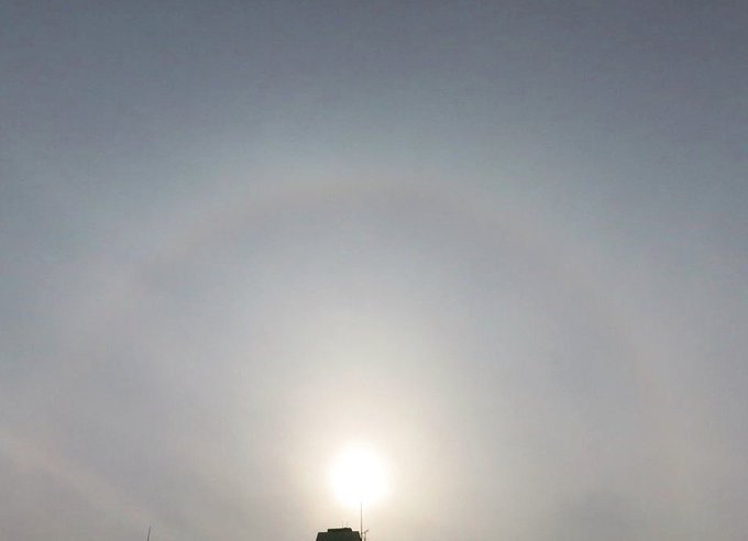 太陽☀の周りに円形の虹🌈HALOがうっすら出てるよ🌈私が描いたL'Arc~en~Ciel(フランス語で虹🌈)リーダーTETSUYAさんLINEスタンプよろしくです🎵https://t.co/gQt24IkEBW