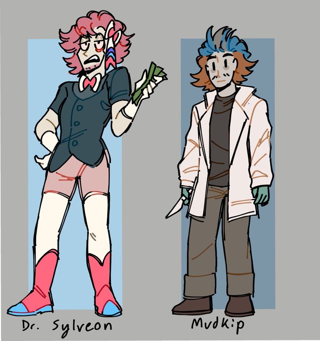 Doodle of mine and my friend (@Tak0ika )’s trainers for our Soullinke!! We already almost lost the starters wish us luck