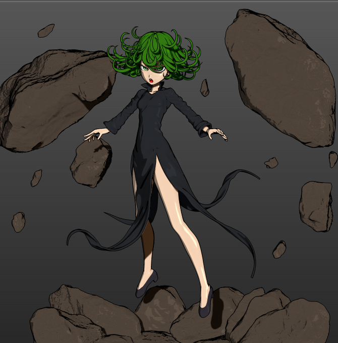 zbrush単体でもマテリアルとポリペイント煮詰めていけば2次絵っぽい表現も可能な感じだね。自分はデザイン画を起こさないと立体にできないヒトなので、二度手間になってしまうけど