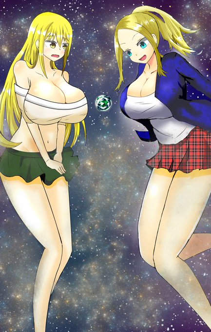 リアルにいそうな長身女性から天を見上げるほど大きな女の子をよく描いています。たまに二次創作もします