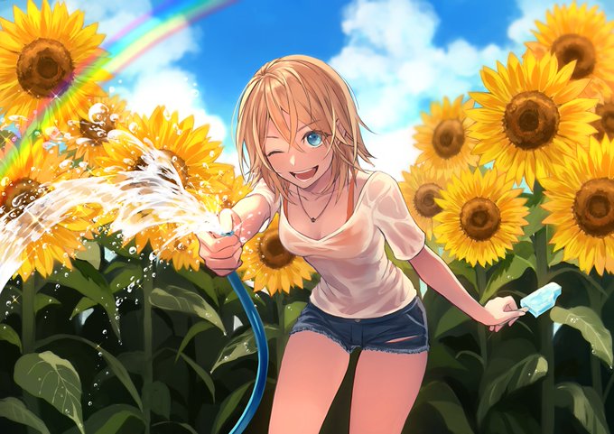 少ししか体験出来てませんが、アリソンの可愛さを布教したいので参加させて頂きます!実際はもう少し大人しい子ですが、表情の移り変わりや仕草が本当に可愛くて…花より君の方が、なんて見惚れていたら水をかけられちゃった感じのイラスト。こんな風にはしゃぐ姿も見たい! #サマーレッスンイラコン