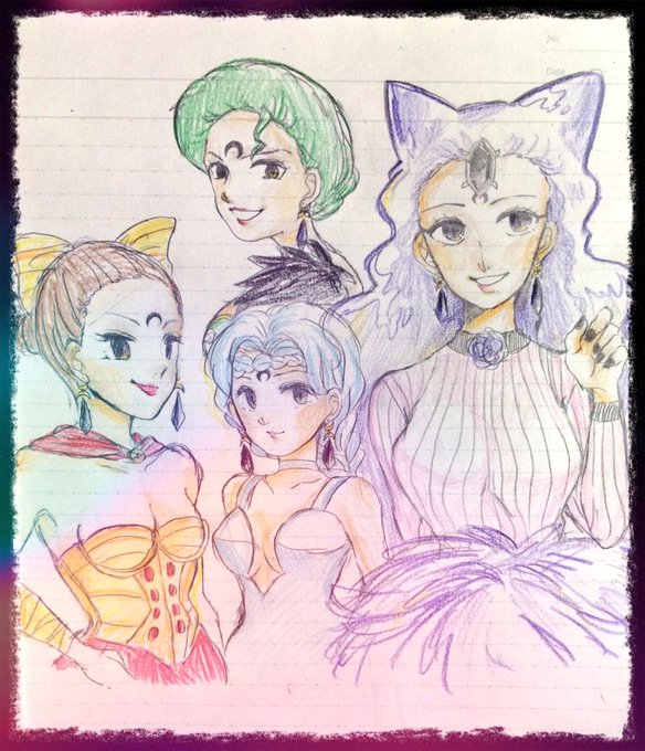 時間外ですが突如描きたくなり亜美ちゃん&まこちゃんと前回お題のなるちゃん&うさぎちゃんです…! #セラムン版深夜の真剣お絵描き60分一本勝負