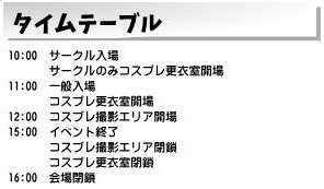 一般入場時間は11時~15時、入場料500円でコスプレも可能です。