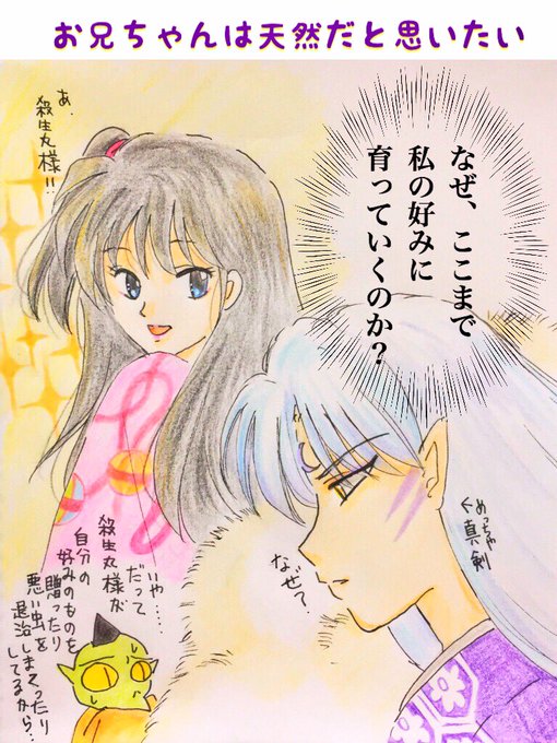 最終回や読切で警備や贈り物を渡す為まめに訪れている殺生丸ですが自分の好みを贈ったり自分が良かれと思う行動全てがりんの成長に直結してるんですよね。当然りんは自分好みに成長すると思うのですが意外と殺生丸は気付いて無いのかも😅りんが自分の好みに育つ事に相当不思議がってそう💦