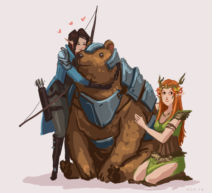 My new Epic #CriticalRole fanart-today is Vex @LauraBaileyVO w/adorable @TrinketTheBear Took 4-5 hours to finish >~<