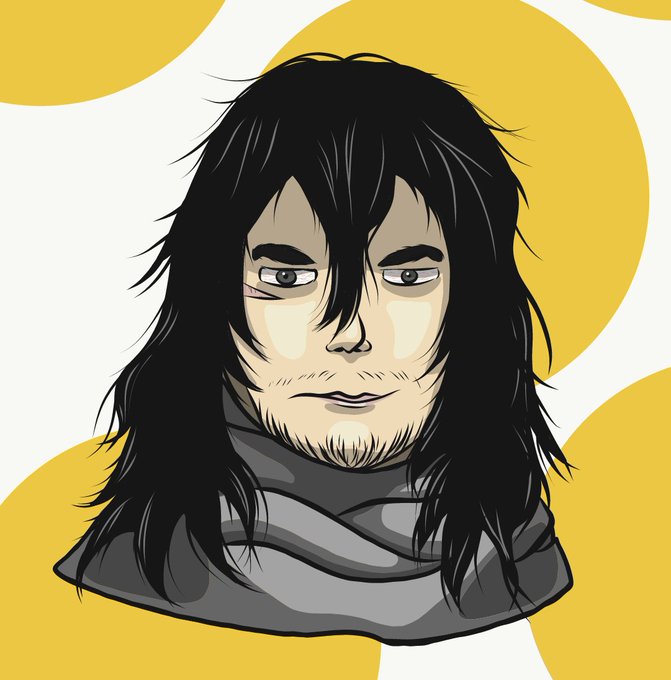 Following on from this I wondered..if i could bring detail down from a photograph into my own style..could I bring the detail UP from an anime character. I picked Aizawa from MHA as he has quite a distinctive look. Plus I heart him. (Tried him out with a variety of backgrounds!)
