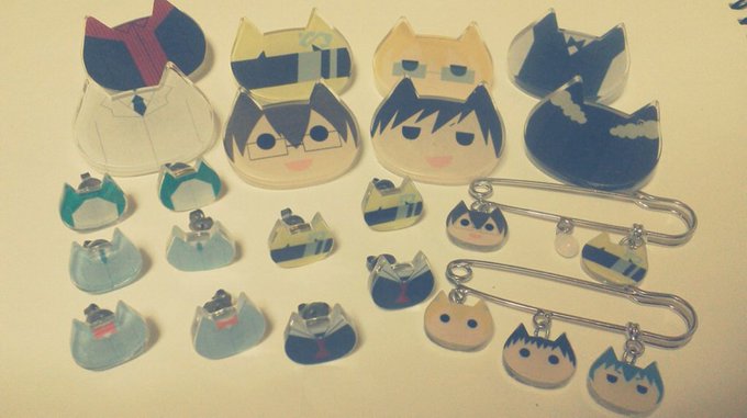 レジンでの顔・服のブローチ(大小)とピアス、プラ板のストラップ等少数ですが当日出す予定です!