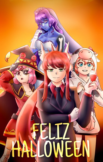 #ddlc #dokidokiliteratureclub #halloween2021 #crossover #cosplay #natsuki #megumin #monika #lucifer #yuri #corpsebride #sayori #cow