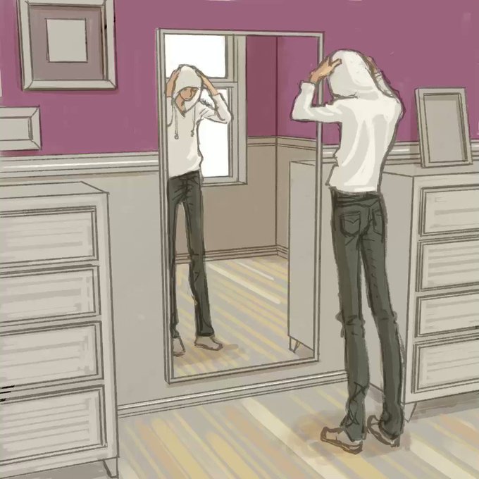 忙しいんですが作り置きというか。鏡の中を描くのがすごく好きで時々描きます。ラズベリー色の壁も好き。今日も9.7インチのiPadです。新しいiPad Proもあるけど描けてないです。朝起きたらProcreateがアップデートしてて非常に困りました。 #procreate #iPad