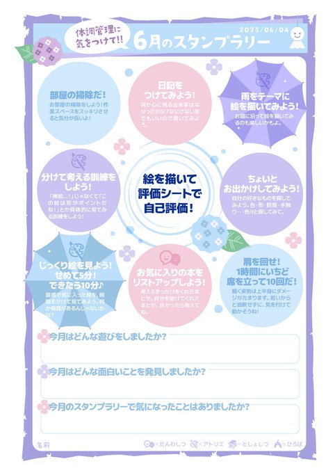 日記を書く、出かける、評価シート(?)