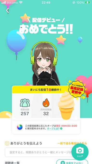 皆様、いつも配信に来てくれてありがとうございます🍦✨