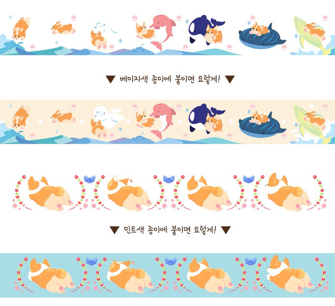 이번에 소개해드릴 굿즈는 뉴스웨이드 재질의 <새와 디저트/동물친구들> 2종인 귀여운 손수건과, 강아지들이 잔뜩 들어간 <패턴패턴/마법의 찻집/고래와 웰시코기>3종의 엽서입니다. 사이즈는 각 사진에 기재되어 있습니다.