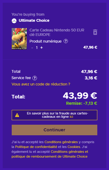 Ajoutez la carte au panier, ajoutez le code, choisissez votre moyen de paiement et le tour est joué !