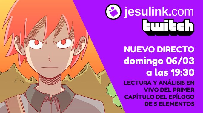 🔴 Estoy en directo desde https://t.co/NUDdoXUMuS leyendo y analizando en persona el primer capítulo del epílogo de 5 elementos. Es algo que no haré habitualmente, así que espero que podáis venir a pasar la tarde conmigo. ¡Empezamos!