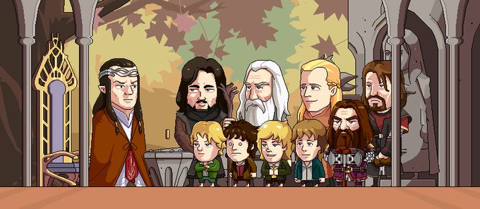 "The fellowship of the ring" #movie #thelordoftherings #tlotr #gandalf #aragorn #frodo #legolas #elrond #gimli #pippin #merry #boromir & #samwise #pixelart #animation by @tenpoundpixel https://t.co/RYxhsqUhIS