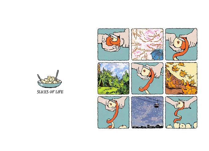 I would like to share a comic book called "Slice of Life"which will be publish soon. In this book, artist @DrawsQu will share some fragments of life, that derived from small observations, pleasing emotions, and life-positive daydreams.