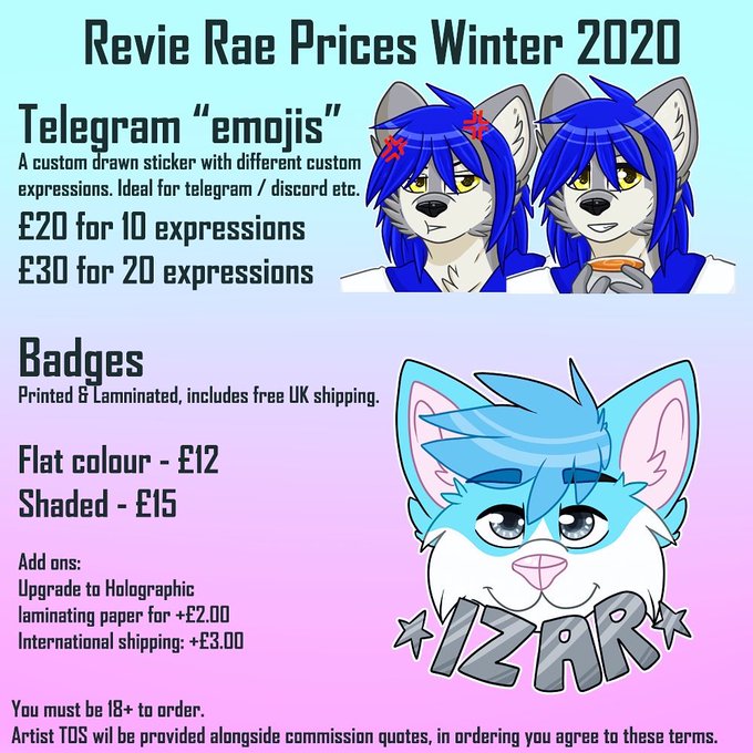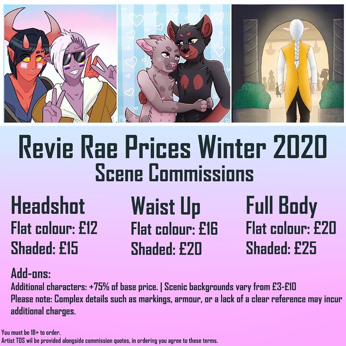 Commissions reopening this Friday. My new price sheet will be launching Friday morning and I'll be opening up for orders at 8pm UK time. All orders will be completed in December, and Christmas deadlines can be accommodated.