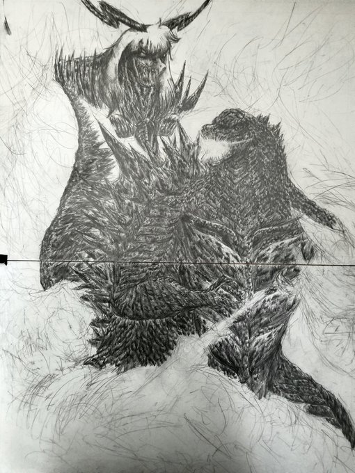 ゴジラの映画を観た後に描いたゴジラvs巨大アズリエル