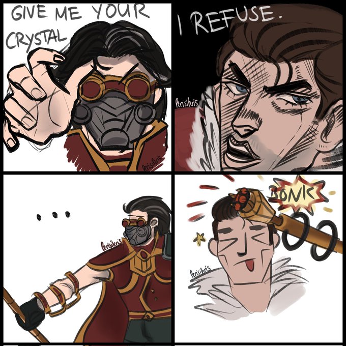 Coven AU from a couple years ago. Witch Jayce and his familiar demon, Viktor. I just enjoy drawing Jayce in blouses and fashionable clothes.