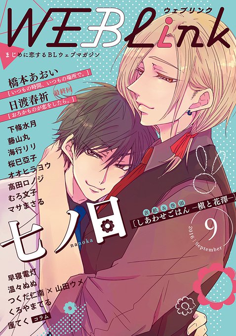8/25配信のWEBLink9月号の表紙と、七ノ日先生より頂いたラフです。ラフを頂いた段階で編集部より、「槇の左手を、花澤の腰を抱く感じにしてください!」とお願いしました。二人の距離感に、思わずむふふ…です! #comip