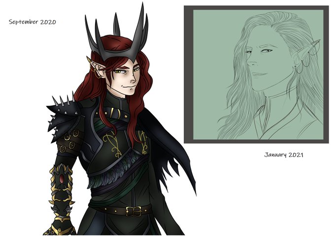 Sneaky comparison shot of Ves's backstory nightmare, Mairon. On the left, September 2020 Mairon. On the right, January 2021 Mairon. I'm genuinely proud of my growth.