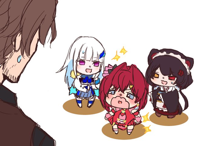 2人の髪色を身長差のままグラデーションさせると黄昏空みたいになる(一枚目)、ってのは描いてる最中に思いついたんですが、発想としては自分ではけっこう気に入っております。