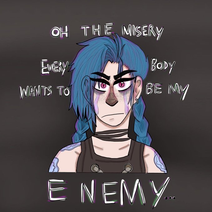 What having blue hair and pronouns will do to a motherfucker 😔. #Arcane #arcanefanart #Jinx #jinxfanart